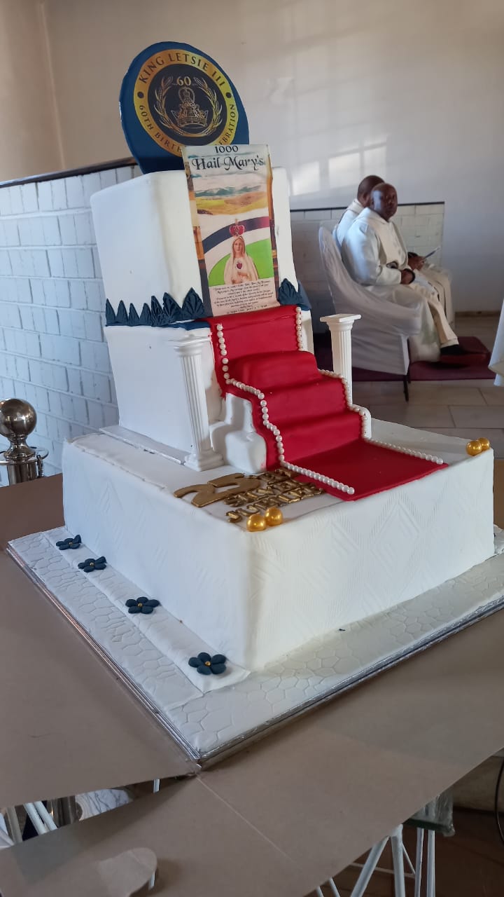 It was at this mass led by Archbishop Tlali Lerotholi where His Majesty received birthday presents that included a banner and a cake which he got an opportunity to cut at the same event.